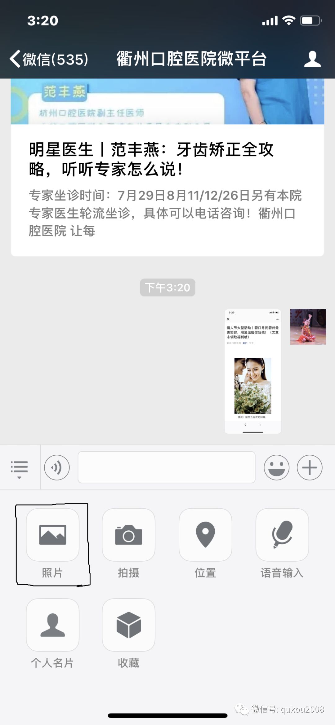 ③ 照片+姓名+联系方式(方便通知您获奖信息)+不超过20字您想说的话(告白也可以哟!)发送至衢州口腔医院微平台公众号的后台即可。